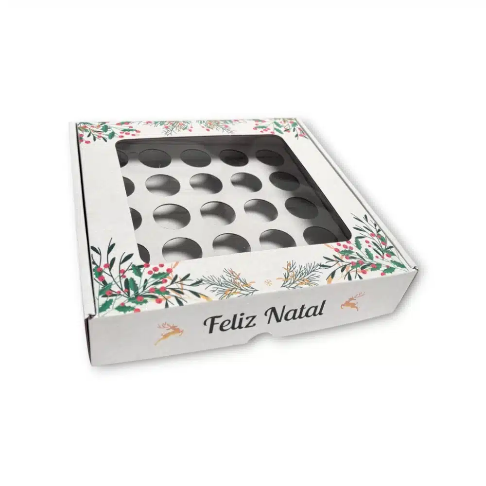 Caixa para Brigadeiros Branca Com Janela e Divisória (6un/12un/25un/50un) Natal