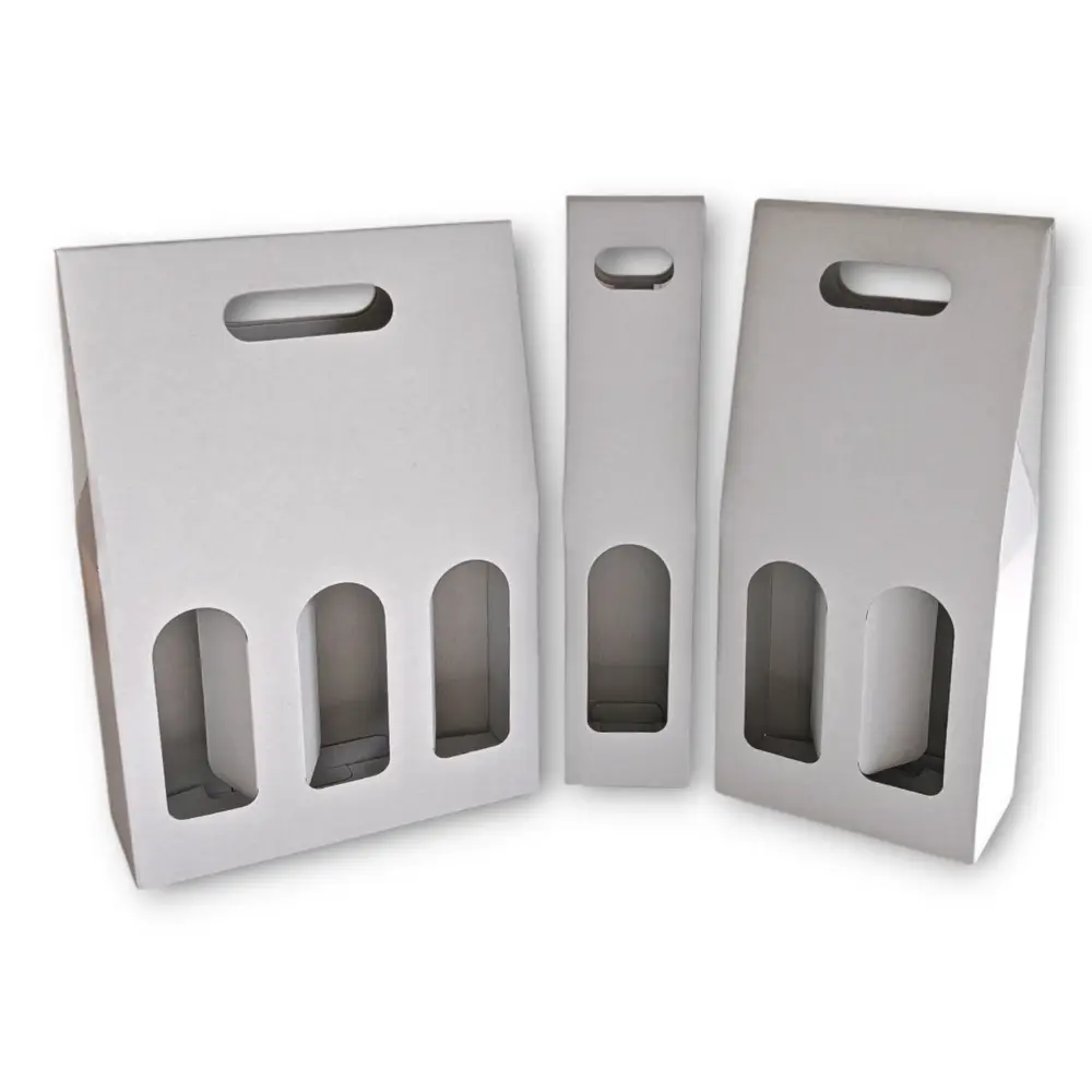 Oferecemos uma seleção de caixas de vinho de cartão ondulado, ideais para envio por correio ou transportadora ou caixas para armazenamento.